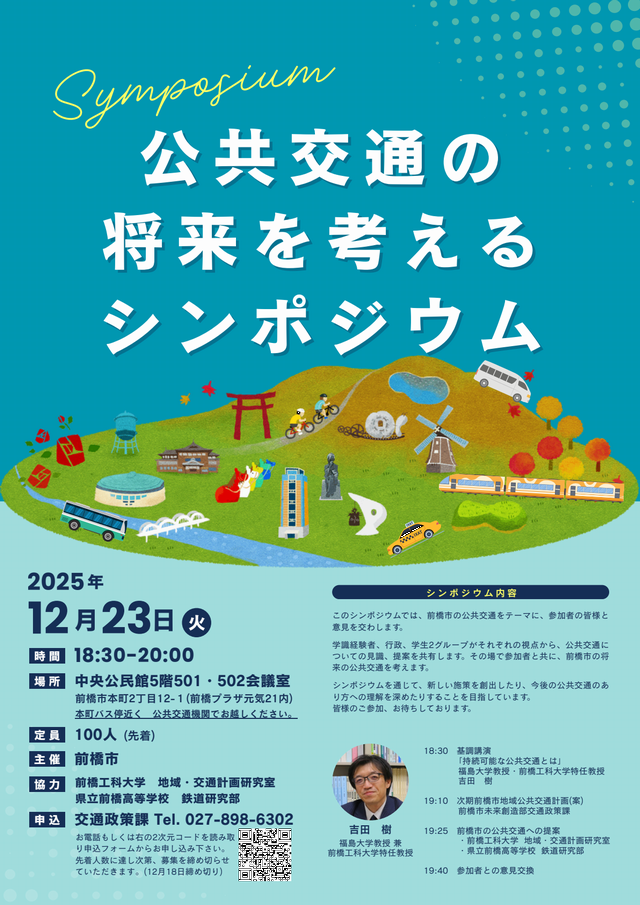 学識経験者、行政、学生、参加者で前橋の将来の公共交通を考えるシンポジウムを開催します。