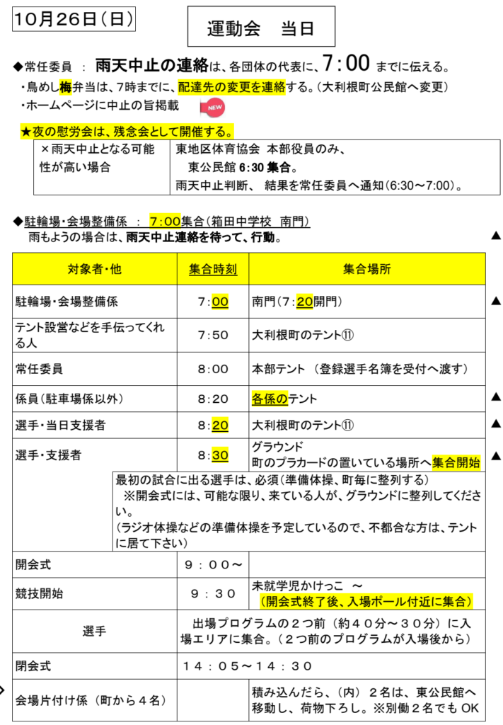 ※開会式には、可能な限り、来ている人が、グラウンドに整列してください。