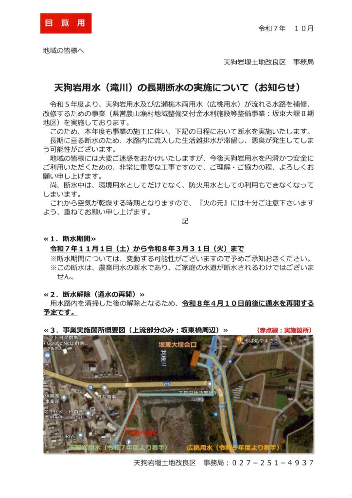 ★この断水は、農業用水の断水であり、ご家庭の水道の断水無し。