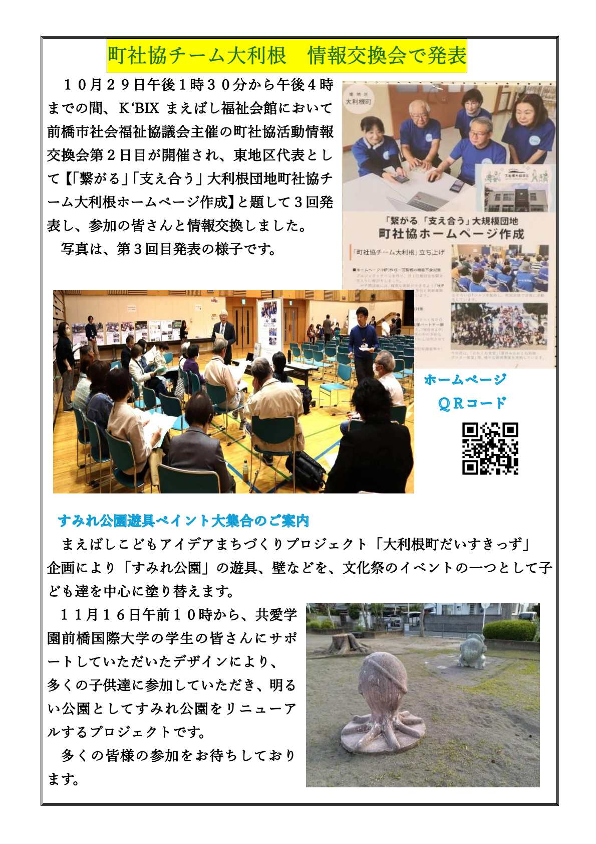 ●「町社協チーム大利根 情報交換会で発表」10月29日
