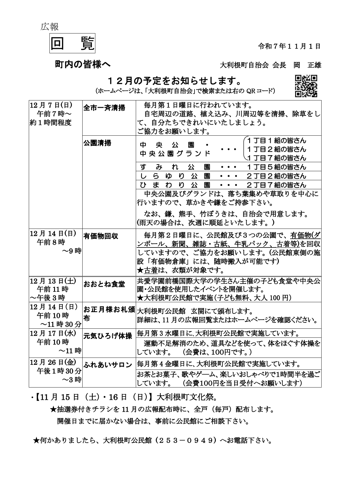 ●「大利根町文化祭開催」11月15日・16日