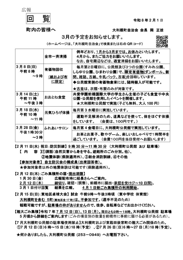 令和8年3月の予定
