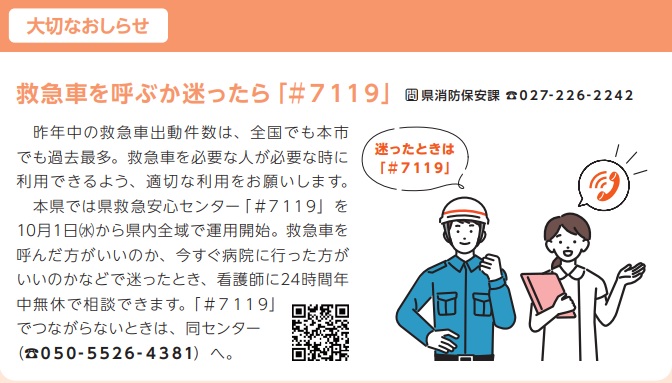 【外部サイト】救急安心センター事業(♯7119)|群馬県前橋市の子育て制度をわかりやすく|イクハク
