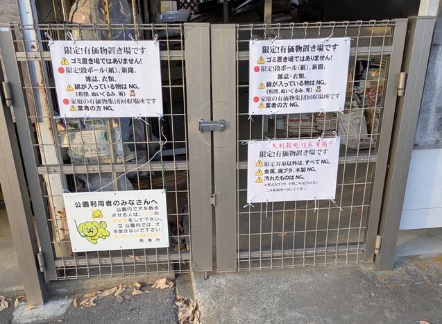 したがって、前橋市が定義する有価物のすべてが回収対象ということでは、ありません。有価物倉庫の看板に記載の内容をご確認下さい。[写真]