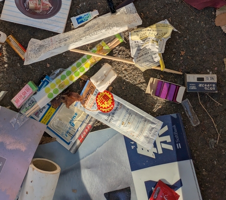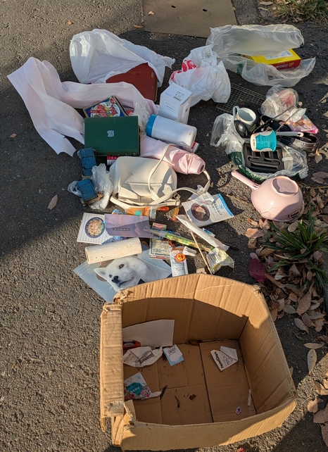 2025年12月8日に発見。金網、プラスチック、ビニール、電池、などを1箱に詰め込んでいた。