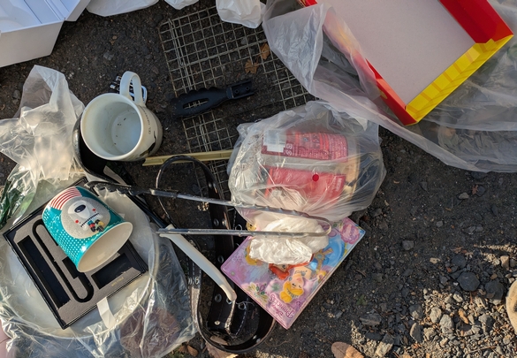 2025年6月の粗大ごみの集団回収時に、有価物倉庫に日常的に不法投棄していた市民を発見。
