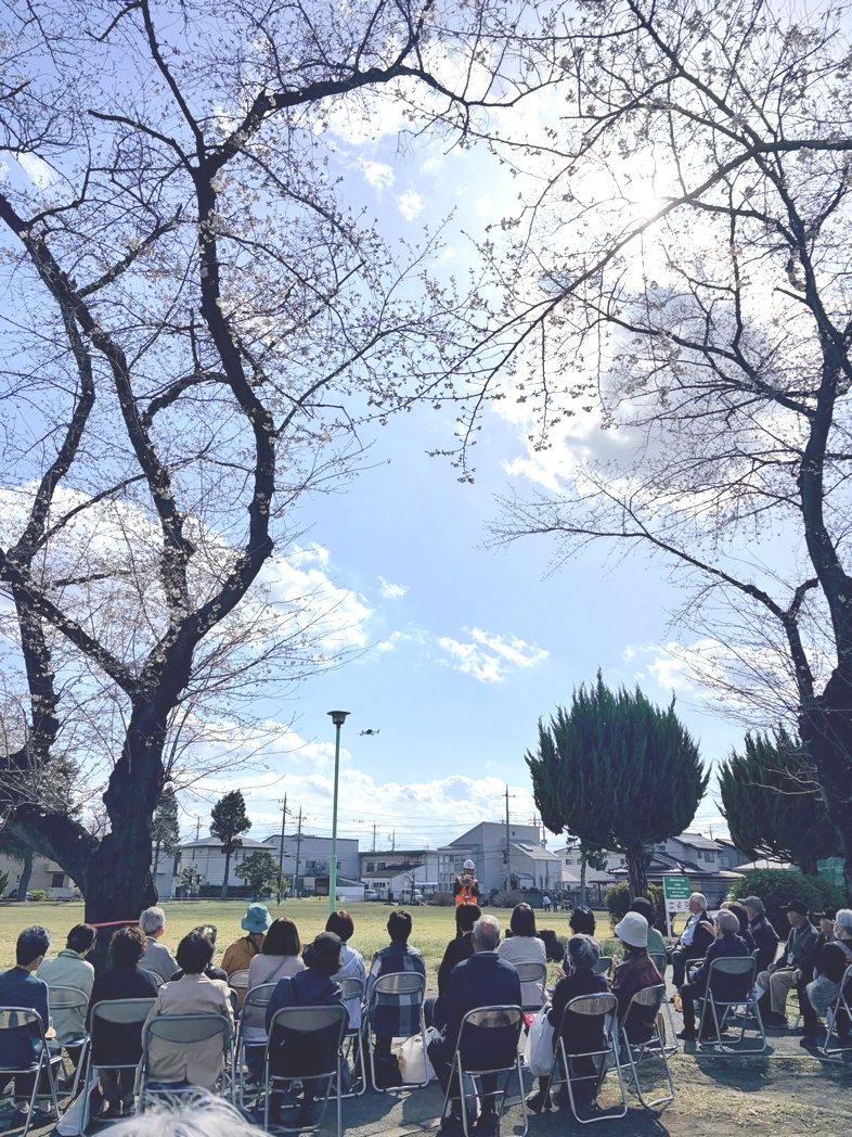 桜はまだ5分咲きでしたが、ドローンを飛ばして写真撮影もあり大変楽しい思い出作りになりました。