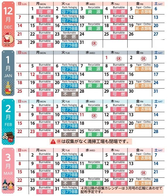 ごみ収集カレンダー令和7年度下期(大利根町一丁目一部地域)[PDFファイル/617MB]