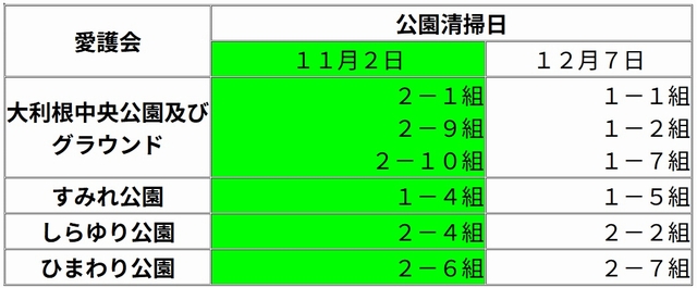 大利根中央公園及びグラウンドの各組の清掃範囲は、バックネット裏の貼紙を確認して下さい。